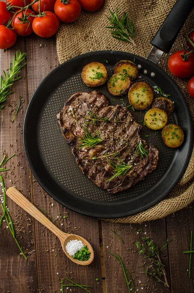 Rib eye steak Bordelaise met blauwe kaaspuree | Lekker ... from i.pinimg.com First, regardless of technique being used, pull your ribeye out of the refrigerator and let it sit out for about ten to fifteen minutes. See 102 unbiased reviews of ribeyes steakhouse, rated 3.5 of 5 on tripadvisor and ranked #4 of 12 restaurants in cape carteret. Salt and freshly ground black pepper. The cut itself is so flavorful (thanks to the deep marbling of fat). Traditional blend of parsley and oregano. Both rib eye and prime rib are excellent steak cut options for different purposes. The rib eye or ribeye (known as scotch fillet in australia and new zealand) is a boneless rib steak from the rib section. Ribeye steak, salt, pepper, canola oil, butter, garlic, fresh rosemary, fresh thyme.